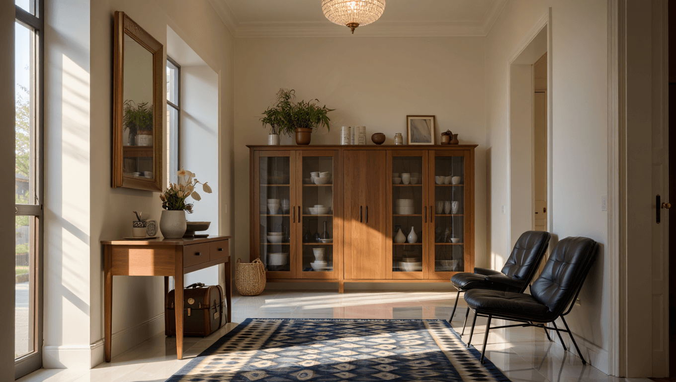 Les petits objets révèlent votre personnalité et rendent l’entrée mémorable. Un miroir grand format agrandit visuellement et facilite les retouches avant de sortir.
