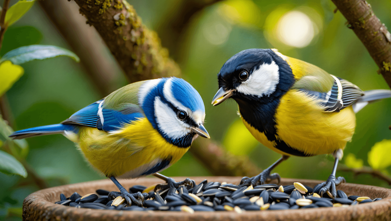 Un jardin accueillant combine arbustes, haies et un point d’eau peu profond. Les mésanges apprécient les buissons pour se percher et les zones offrant insectes et graines en complément des mangeoires.