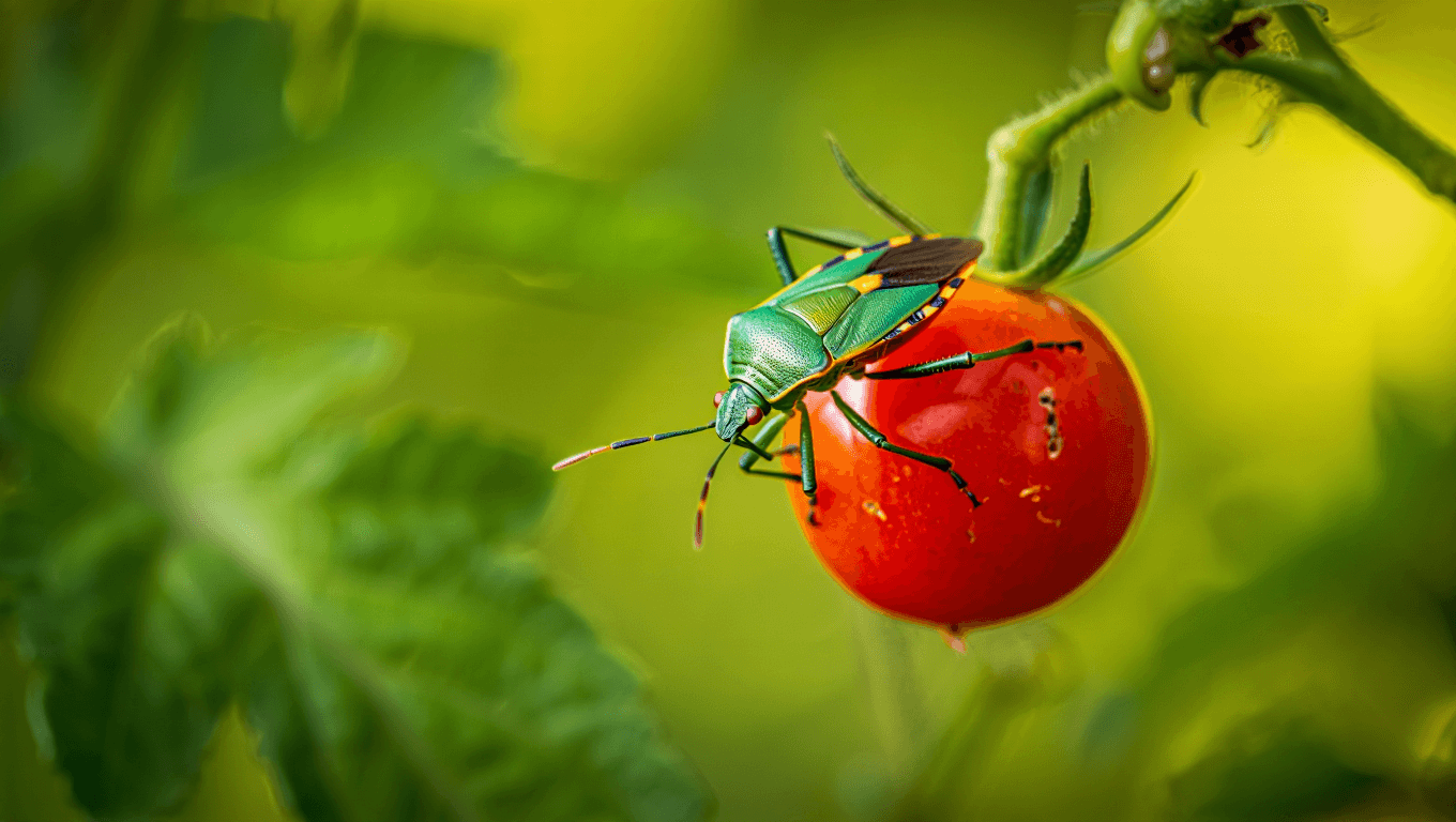 Les punaises vertes se nourrissent de la sève des feuilles, des fruits et parfois des graines, ce qui peut provoquer des taches, des malformations et des zones molles sur les récoltes. En général, leurs attaques restent localisées et ne conduisent pas à la perte totale d’une culture.