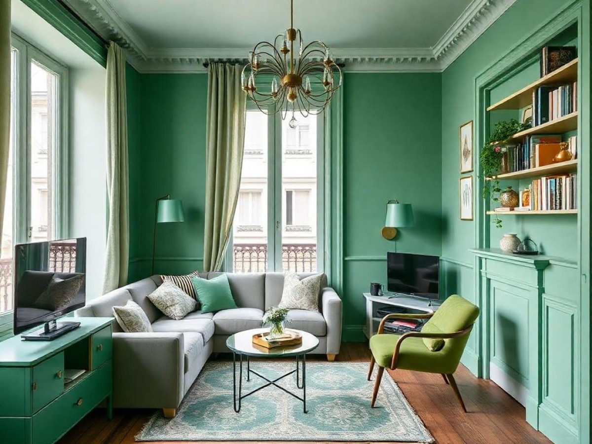 L’idée derrière la conception de cet appartement était de le transformer en un refuge vibrant et plein de vie, malgré sa taille réduite. L’utilisation judicieuse de la couleur verte, qui est actuellement très en vogue, joue un rôle clé dans l’atmosphère chaleureuse et dynamique de l’appartement.